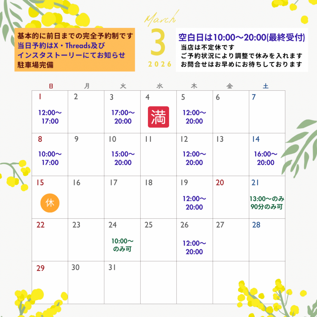 こんにちは😊 3月の営業カレンダーもアップします!